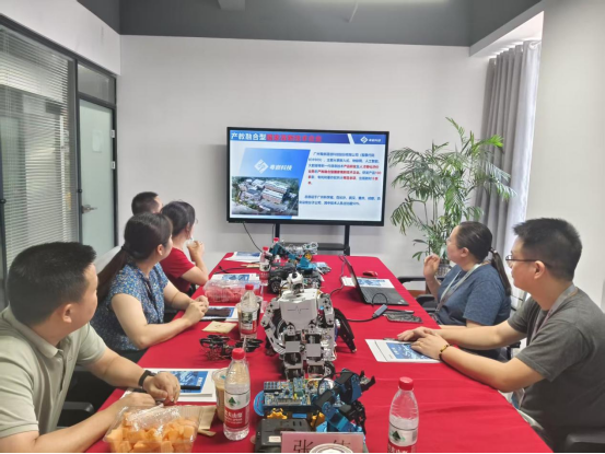 在湖南工控帮智能制造研究院有限公司,学院与公司负责人就智能制造领域的最新技术、课程体系开发以及产学研合作进行了交流。公司在工业机器人应用技术、实践教学等方面的成果为学院的专业建设和人才培养提供了参考。