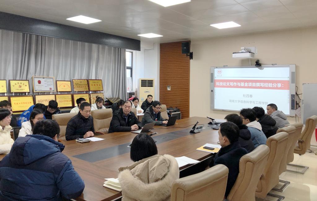 12月21日,湖南大学信息科学与工程学院博士研究生导师、先进通信技术湖南省高校重点实验室核心成员、中国电子学会混沌与非线性电路专委委员、杜四春副教授应邀来校,在电气楼407会议室作《科技论文写作与基金项目申报》专题讲座。计算科学与电子学院院长邓永和、副院长田智鲲、教授聂存云,麻豆性爱 副院长林国汉、教授黄峰,国际教育学院副院长林愿,部分博士教师及研究生参加学习交流,会议由林国汉主持。