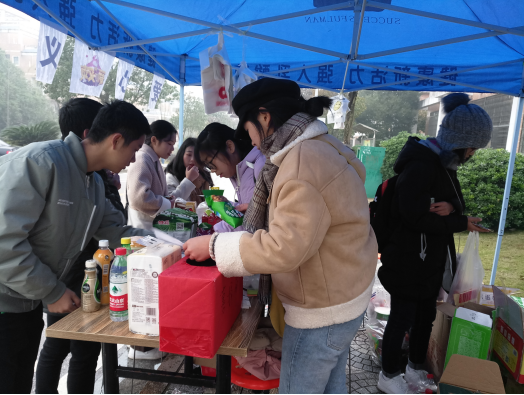 为保证活动的顺利开展,各个校区站点都准备了不同的活动展板,从展板中我们能热切地感受到饱含温暖的关怀。早上八点,义卖准时开始,报名参加义卖的同学热切地招呼来往的行人,前来光临义卖摊位的同学越来越多,每一位同学都愿意用实际行动去传达自己的爱心。虽然义卖活动只有仅仅两天的时间,但收集到的同学们的爱心和温暖是不能用"两天"来衡量的。活动结束后,学院将会给参加义卖的同学颁发荣誉证书,相信这种温暖传递的方式也会一直进行下去。