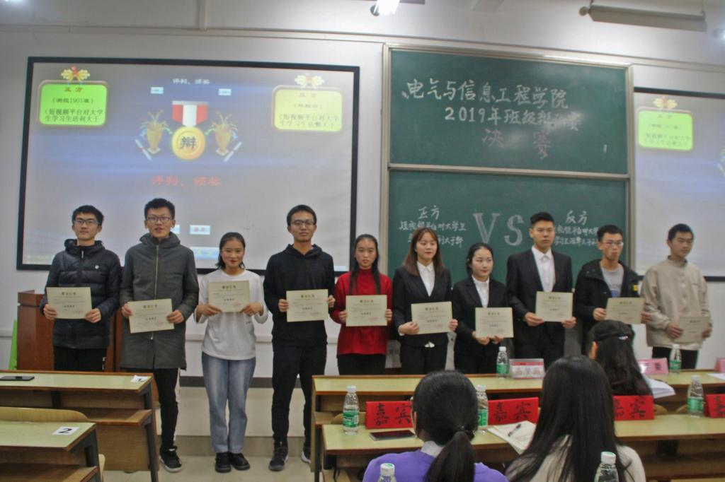 高梦薇代表学院向到场师生表示欢迎,向积极筹备此次辩论赛的所有工作人员、参赛辩手以及全体同学表示感谢。随后双方辩手上台进行自我介绍。正方为测控队,所持观点是“短视频平台对大学生学习生活利大于弊”,反方队伍为外联部,所持观点是“短视频平台对大学生学习生活弊大于利”。双方围绕主题展开一番激烈的辩论。正方选用一些数据和事例进行叙述,指出抖音、快手等短视频平台能够给大学生带来积极影响,大学生不仅可以在短视频平台上学习新事物,还能了解时事政治、拓宽视野。反方则认为,抖音、快手等短视频平台会影响到大学生的学业,使之沉迷于其中,从而荒废学业,同时从内容上看,短视频所传播的信息是良莠不齐的,容易对大学生产生不良影响。双方辩手以严谨的思维和滔滔不绝的口才,为大家呈现了一场精彩的辩论赛,观众提问环节更是精彩连连。曾获“优秀辩手”称号的高卫红、陈悠一番点评之后,本场比赛也决出了胜负。测控1901班摘得本届班级辩论赛冠军,外联部获亚军,电气1903班、1905班获季军,机器人工程1903班于子竣等10名同学获“优秀辩手”称号。