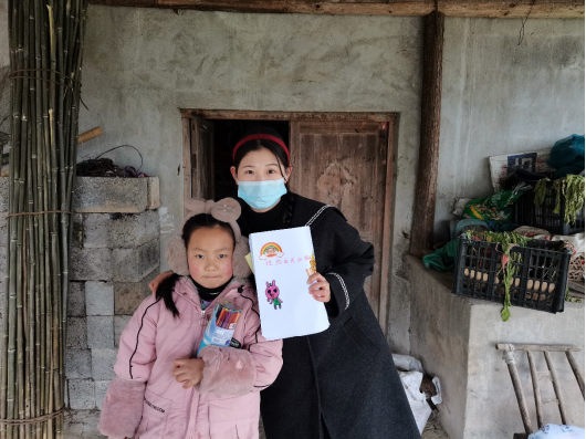 图为自动化1901班郑阳同学与留守儿童合影