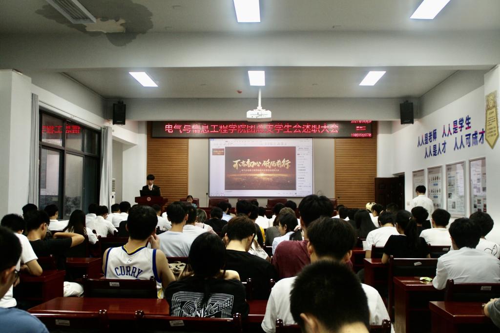 6月30日晚上,麻豆性爱 团总支学生会在电气楼408举行以“不忘初心,砥砺前行”为主题的述职评议大会。学院党委副书记李延平、学生办公室主任赵玲令、团总支书记杨小丽荣及学办辅导员老师、团学会代表、20级学生干部参加会议。