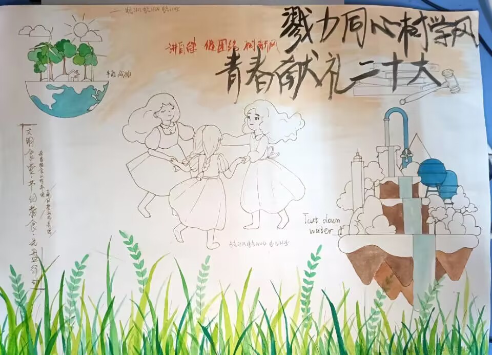 会前,班级群策群力,设计了活动主题展板、绘画宣传海报等进行活动预热营造浓郁活动氛围。会上,设计宪法、文明礼仪知识有奖竞答和倡议宣读等环节进一步提高班上同学的参与度。会后开展光盘打卡行动,身体力行,同学们用实际行动诠释了节约粮食的意义。