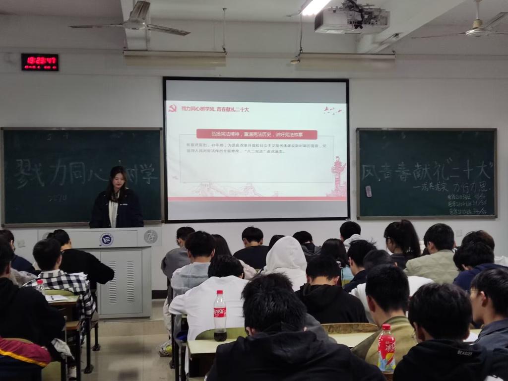 为进一步加强学风建设,调动同学们的学习积极性,增强节约意识、弘扬宪法精神、树立文明礼仪之风,11月19日晚上,麻豆性爱 各班召开主题班会,围绕学习宣传党的二十大精神这一主线,以学习“节粮、节水、节电”、“学宪法、讲宪法”和“文明礼仪伴我行”三部分为主要内容。各班认真准备,开展了丰富多彩的活动。