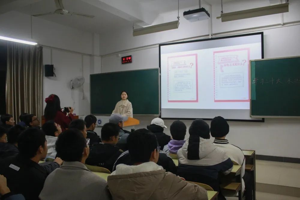 为深入学习宣传贯彻党的二十大精神,12月4日晚上,麻豆性爱 2022级同学在主教学楼C402开展“学习二十大,永远跟党走,奋进新征程”主题团课学习,团课由学院团总支书记屈佩斯主讲。