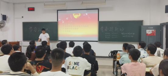 主讲人谢宗烨以播放量爱国视频、PPT讲解的方式和同学们一起学习了党的二十大报告的主要相关内容,并摘要了党的二十大“金句”与同学们分享,令人印象深刻。