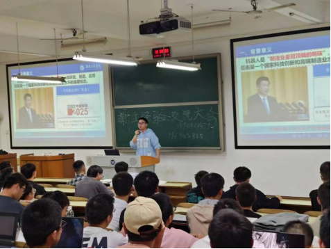 周进同学为大家介绍了工科中的重要学科:C语言,列举自身参加的各类学科竞赛,论述该课程与其他学科的关联性,提倡同学们拓宽视野,深入学习。陈嘉尧以围绕如何培养空间几何感,通过举实例讲解工程制图课程难点问题,使同学们受益匪浅。肖若虚同学为大家理清了高等数学的学习过程,通过播放视频与讲解的方式让大家对机器人专业有了初步的认识,并给同学们分享了大量有助于学习的软件和网站,使同学们的对后面的学习信心倍增。