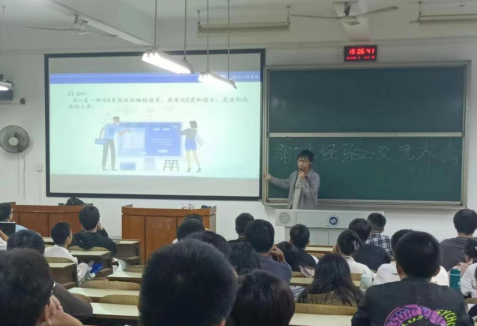 马韵芝同学首先从学习思维、挂科误区、评定标准等方面为大家讲解了大学学习与以往学习阶段的不同,让大一的同学们对大学学习有了更加清晰的认知;随后,强调工程制图课程笔记的重要性与必要性,并举出具有代表性的例题,进行细致讲解。李想同学分享了高数学习的方法,并以自身数学竞赛经历举例说明高数对自身与日后学习的帮助。程玲同学为大家分享了C语言的学习方法,重点讲解了数据结构与算法等学科难点。