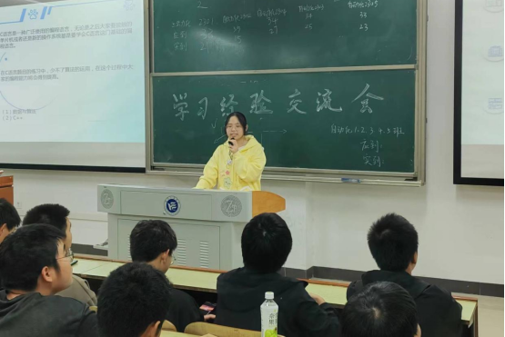 朱希雯介绍了高数的学习方法:“自主学习,勤思考,充分利用网络资源”。付佳贤同学介绍了C语言的起源及奥秘,也讲述了C语言学习的困难,告诉大家应该主动学习,体味它带给我们的好的情绪价值,即“兴趣是最好的老师”。王苏同学介绍了工程制图这门学科的重难点——画图,她给出“勤动手,多思考”的学习方法。