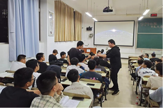 新能源专业与机器人专业在D301召开经验分享会,主持人唐涛热烈欢迎分享嘉宾的到来,他们分别是机器人2201周进、电气2201陈嘉尧、机器人2001肖若虚三位同学。