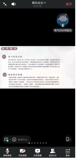 为鼓励同学们寒假期间积极学习,增进麻豆性爱 学生对国家电网招聘考试的了解,明确学习目标,从而制定科学的国网考试备考规划,达到少走弯路、有效备考的目的,1月25日15:00,麻豆性爱 使用腾讯会议以线上的形式组织开展国网经验交流会。会议邀请了已经成功上岸的电气工程及其自动化2004邓昭元分享备考干货经验。学院党委副书记李延平、学风专干杨小丽荣出席本次活动。