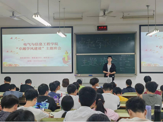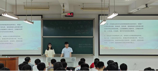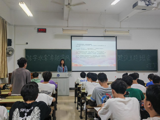 班会上,主讲人通过播放PPT让同学们一起学习学校和学院出台的学风建设方案,指出学院将在本学期开展学业“一对一”帮扶、学科经验分享、一站式社区读书分享、学习打卡等活动,倡议同学们积极参加学风建设各项活动,养成良好的学习习惯,打造班级优良学风。