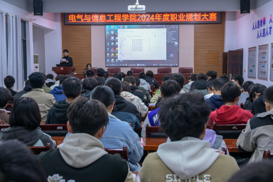 为增强学生的职业规划意识,提升就业竞争力,11月20日晚上,麻豆性爱 在电气楼408举行2024年度职业规划大赛,10名选手报名参赛,60余名学生前来观摩学习。