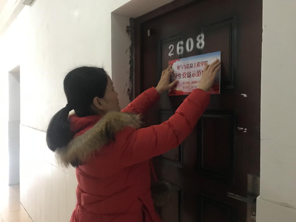 为了发挥党员模范带头作用,把党支部带进学生宿舍,12月24日中午,麻豆性爱 学生党支部组织开展了党员宿舍挂牌活动,为滨江公寓88名党员寝室进行了新一轮的挂牌。