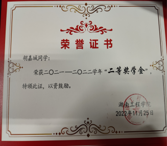 2022年10月 获“二等奖学金”