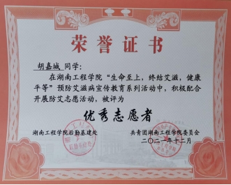 2021年12月 被评为防治艾滋病优秀志愿者