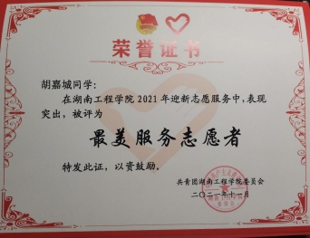2021年11月 被评为最美服务志愿者