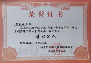 2022年3月 被评为2021年度“青年大学习”学习达人