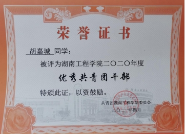 2021年4月 被评为优秀共青团员干部