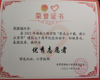 2021年12月 被评为建校七十周年优秀志愿者
