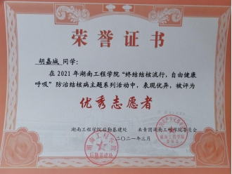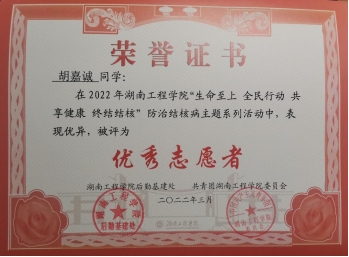 2022年3月 被评为防治结核病优秀志愿者