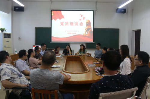 为庆祝中国共产党成立97周年,深入学习贯彻习近平新时代中国特色社会主义思想和党的十九大精神,提升基层党组织的凝聚力和战斗力,增强广大师生党员的归属感、使命感和荣誉感,6月28日下午,在电气楼407会议室,电气信息学院党总支召开庆“七一”党员座谈会,党员教师参加,会议由党总支书记岑蓉主持。