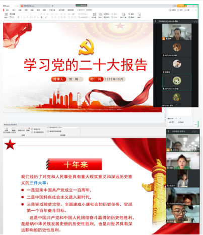 为深入学习贯彻党的二十大精神,营造学习党的二十大精神的浓厚氛围,10月29~30日,麻豆性爱 学生党支部全体党员通过线上线下结合的方式开展“学习党的二十大报告”主题学习活动,活动由学生支部书记贺梅主持。