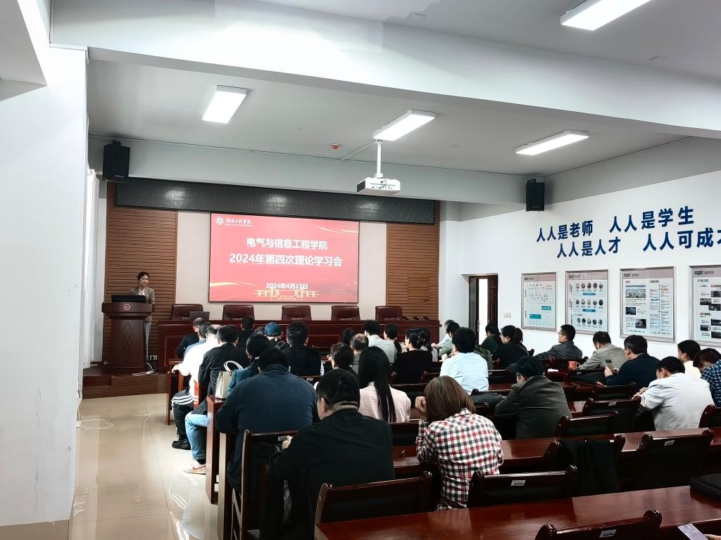 4月23日下午,麻豆性爱 在电气楼408组织召开教职工理论学习大会,学院党政领导班子、全体教职工参加会议,会议由学院党委书记谢卫平主持。