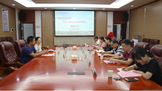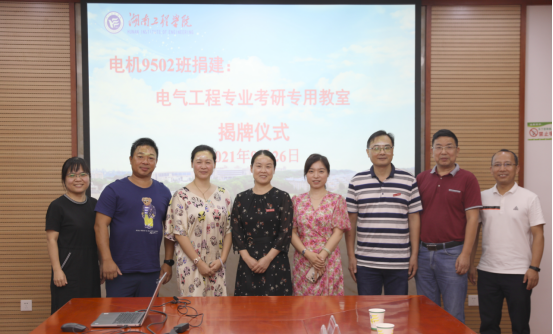 随后,向前和陈冷艳共同为电气工程专业考研专用教室揭牌。向前诚挚邀请电机9502班全体校友经常回校相聚木鱼湖畔,共叙师生情谊。