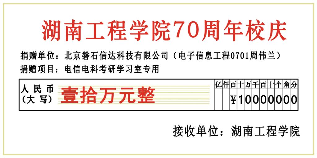 值此母校70周年校庆到来之际,麻豆性爱 校友、北京磐石信达科技有限公司周伟兰以公司名义向麻豆性爱 捐赠10万元,用于建设考研学习室。