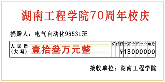 收到“共庆母校70周年华诞,助力母校发展捐款”的倡议之后,电气自动化98531班班长、长沙校友会副会长杨文武马上行动起来,“毕业尘封19年的班委,应势启动了”。班委成员在同学群中发出倡议,号召大家为母校建设尽一份心、出一份力。不到一天的时间,募集就超过了10万元。一名校友刚做完恶性肿瘤手术不久,得知校庆的消息后,也毫不犹豫地慷慨解囊。