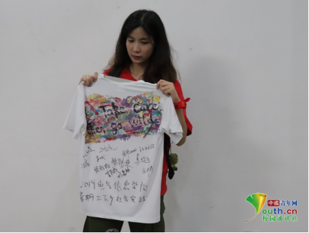 志愿者展示创意涂鸦文化衫。中国青年网通讯员梁艳摄