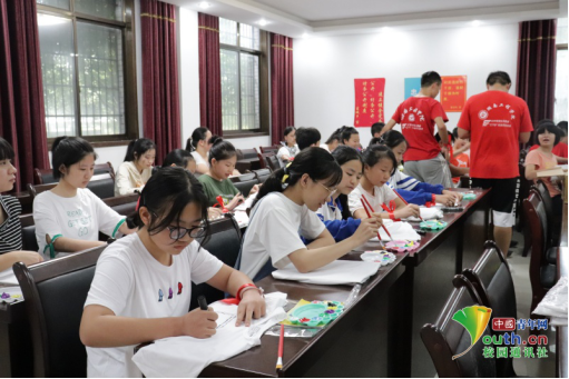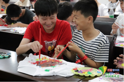志愿者与孩子们共同绘制文化衫。中国青年网通讯员梁艳摄
