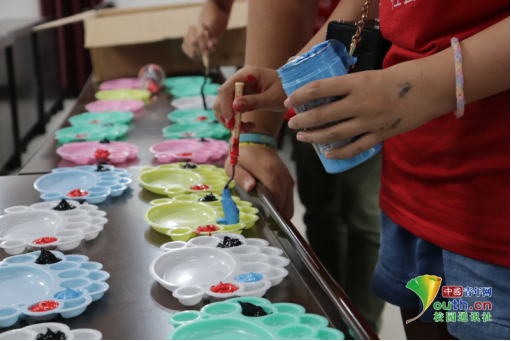 志愿者提前准备绘制所需颜料。中国青年网通讯员梁艳摄