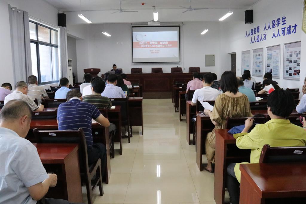9月24日下午2点半,麻豆性爱 举行庆祝中华人民共和国成立70周年宣讲活动,党总支书记黄望军以“新时代、新中国、新湖南”为题进行了宣讲,从新中国新湖南70年发展成就辉煌、新中国新湖南70年发展经验弥足珍贵、对历史最好的纪念就是创造新的历史三个方面进行了讲解。通过宣讲,大家对新中国70年的发展成就及湖南70年来的变化感到骄傲和自豪,对未来充满了希望和奋斗的动力,宣讲反响热烈。