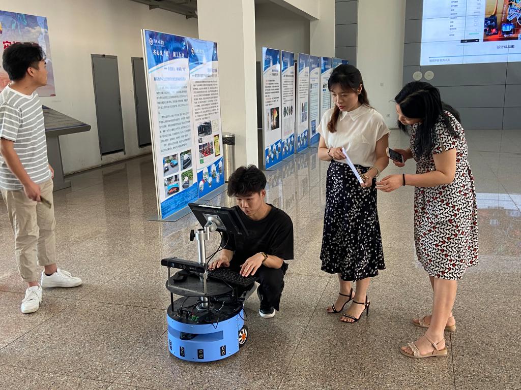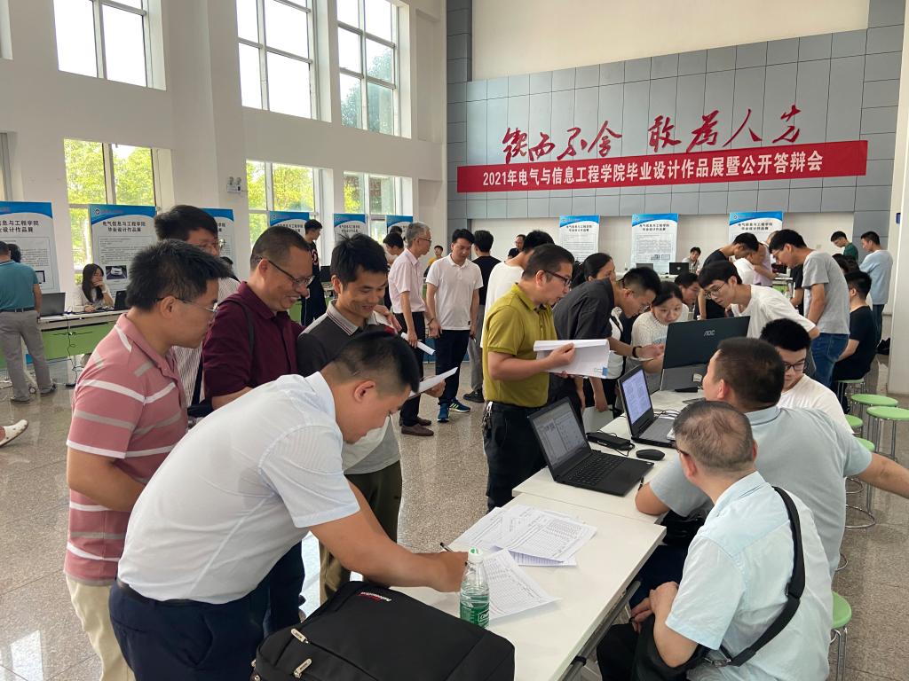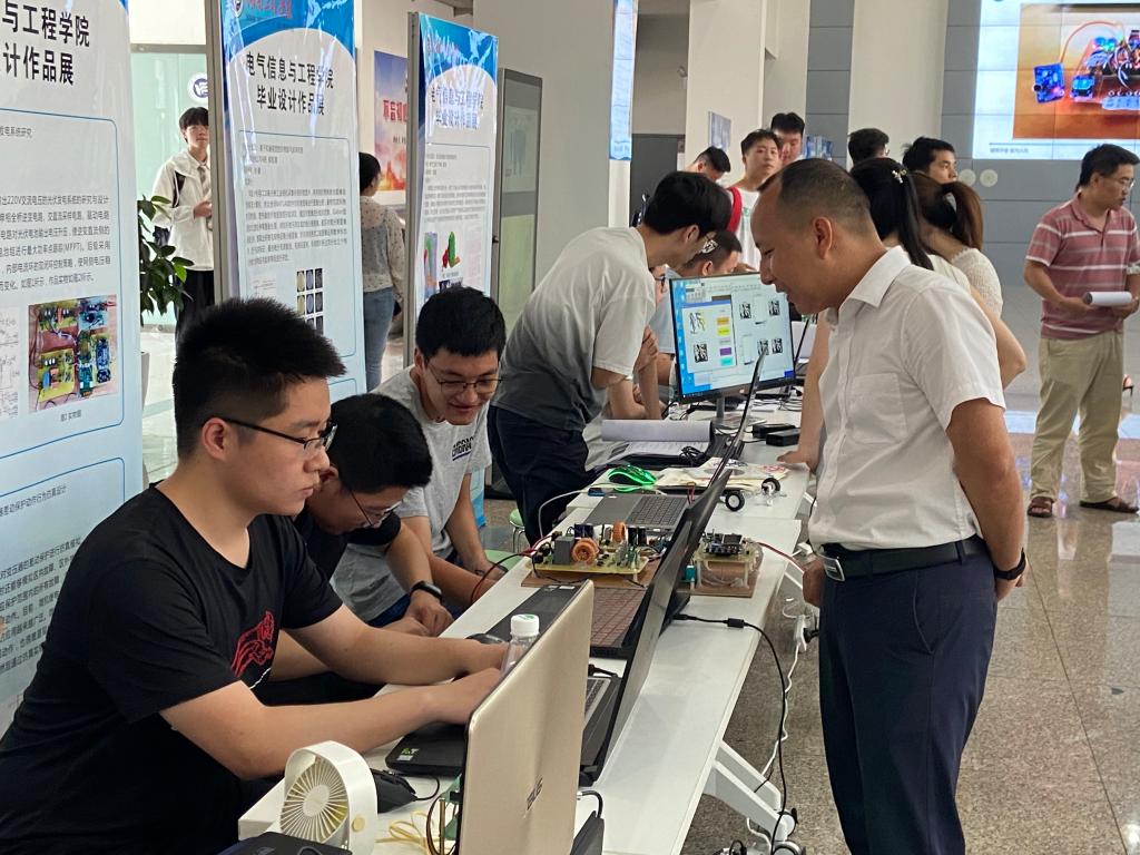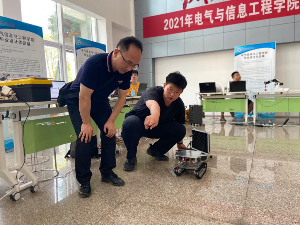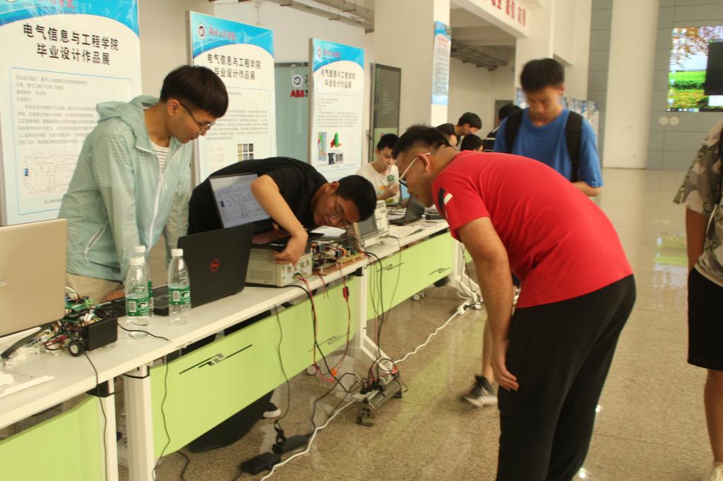“智能小车有哪些功能?”“循迹、避障、蓝牙等功能都能实现。”“机器人的可运行速度以及加速度是多少?”6月7日,电气楼一楼大厅人头攒动,麻豆性爱 毕业生一边忙着给低年级同学介绍作品,一边还要回答导师的提问。这是一场毕业设计展,同时也是一场毕业答辩会。此次作品展面向全校师生展示毕业设计作品,并进行答辩视频滚动播放、学生们现场答辩回答问题,其他年级学生踊跃前来观摩。