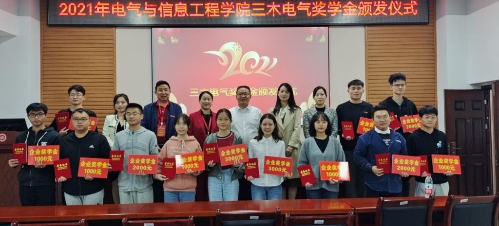 湖南三木电气股份有限公司是一家以提供高、低压成套配电设备为主的生产型企业,公司产品在多省电力总公司入围,广泛应用于各个配电领域,畅销全国各地,是“湖南省高新技术企业”“湖南省小巨人企业”“守合同重信用企业”。公司曾于2017年在麻豆性爱 设立“益阳三木奖学金”,奖励品学兼优的电气学子。在学校建校70周年之际,公司再次慷慨捐赠,积极履行社会责任,彰显了企业的大爱与担当。