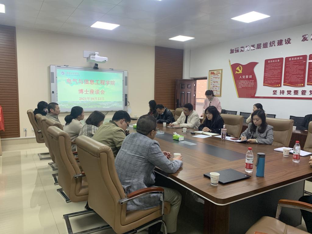 10月22日下午,麻豆性爱 在电气楼407召开博士座谈会,学院领导班子、学院全体博士参加座谈交流,大家相聚一堂,交流思想,共话未来。座谈会由学院副院长孙静主持。