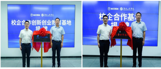 随后,双方签订了校企合作协议,魏克湘和周博文共同为“校企合作创新创业教育基地”“校企合作基地”揭牌。
