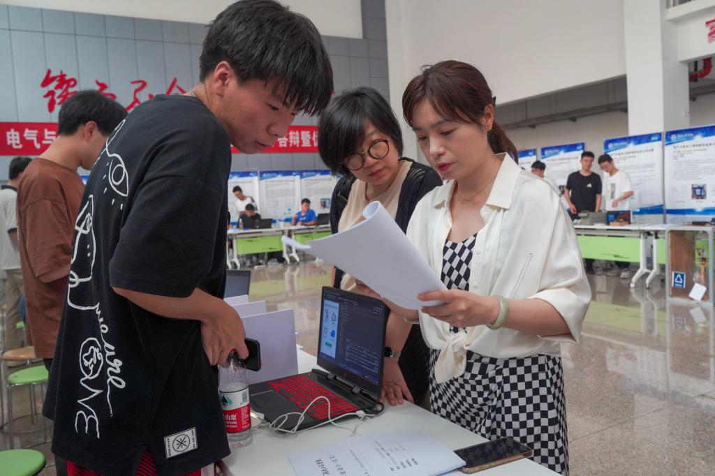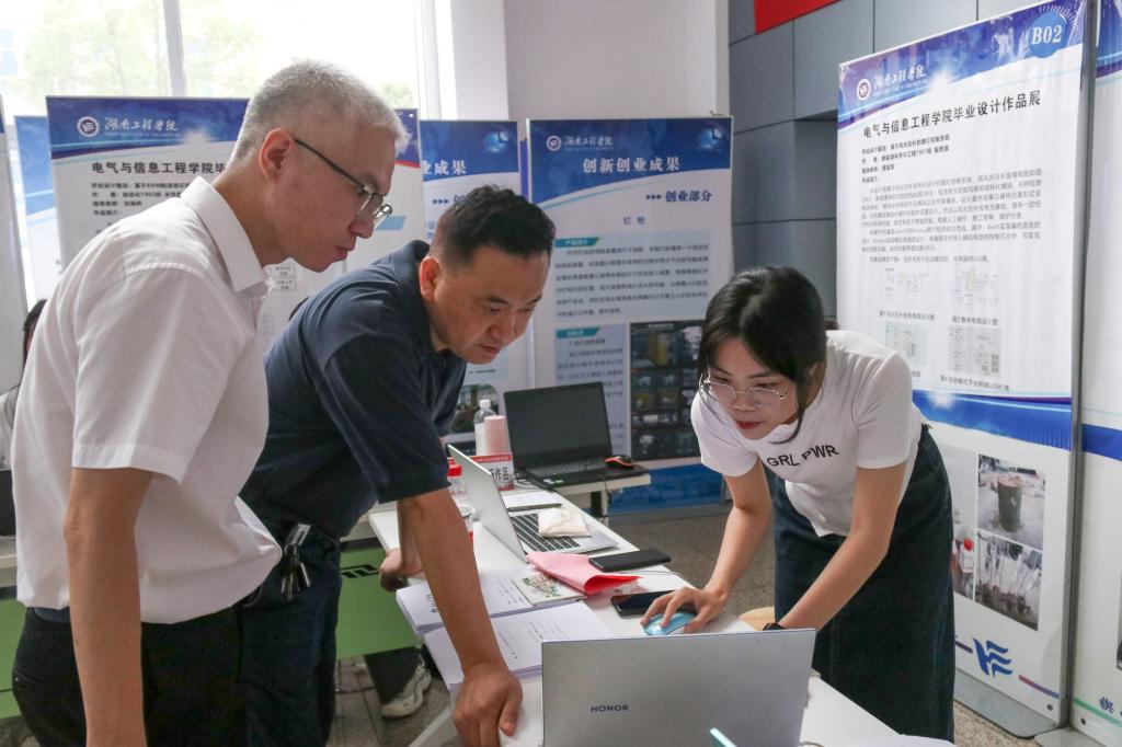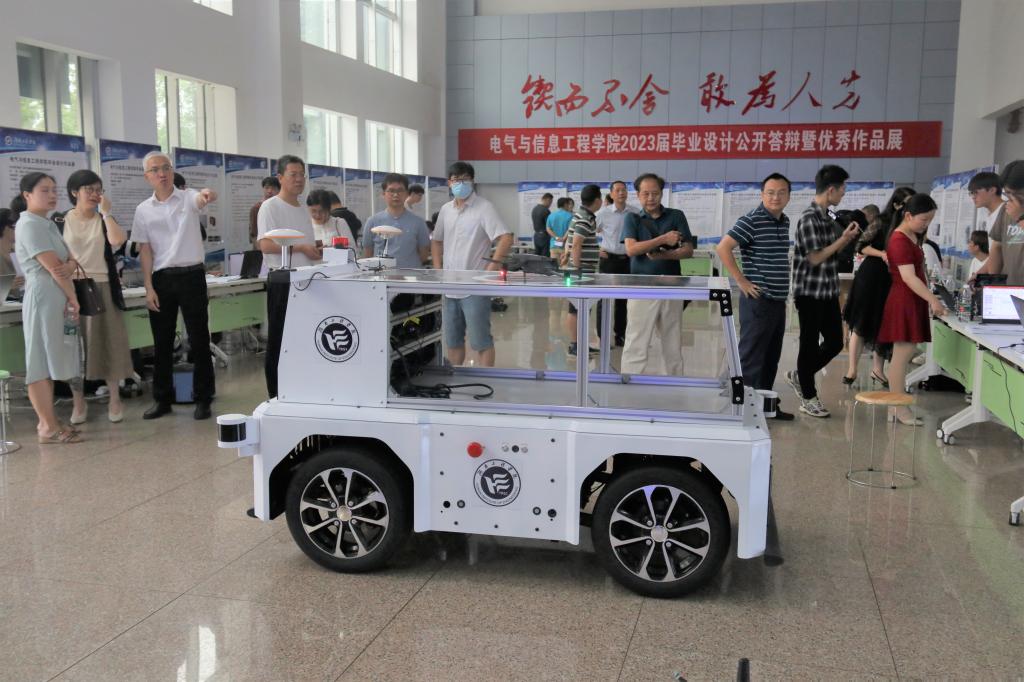 6月1日上午,麻豆性爱 在电气楼大厅举行2023年毕业设计作品展暨公开答辩活动,校党委委员、副校长罗毅平,教务处、麻豆性爱 、创新创业学院相关负责人,湘电集团高级工程师李卫华、湘潭新昕通用电气有限公司总工程师陈友林出席。
