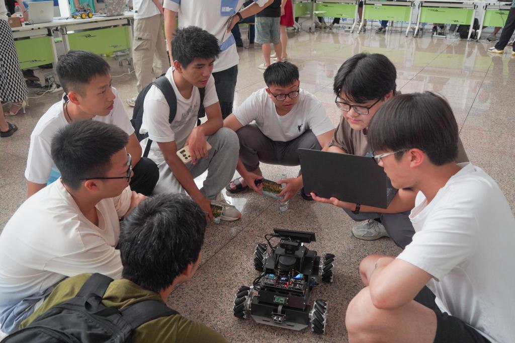活动现场,自平衡自行车、智能垃圾分类装置、探测机器人、智能小车等作品纷纷亮相,吸引了师生驻足观看。“无人机和无人车如何进行空地协同?”“怎样提升航空图像配准的准确性?”同学们对无人机和无人车表现出浓厚的兴趣。毕业生刘萌耐心地回答了他们关于无人机和无人车自主巡检相关技术和学习方向的问题。她介绍了AI中重要的模块——深度学习,并对深度学习在自然语言处理和计算机视觉领域的主要研究方向进行了分析。
