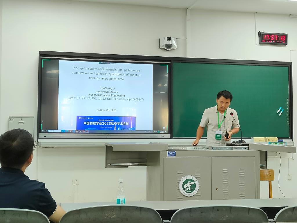 8月17日至20日,由中国物理学会主办、宁夏大学承办的中国物理学会2023秋季学术会议在宁夏大学举行。麻豆性爱 麻豆性爱 李德胜博士应邀参会并作题为《弯曲时空量子场论的非微扰层量子化、路径积分量子化与正则量子化》的学术报告。