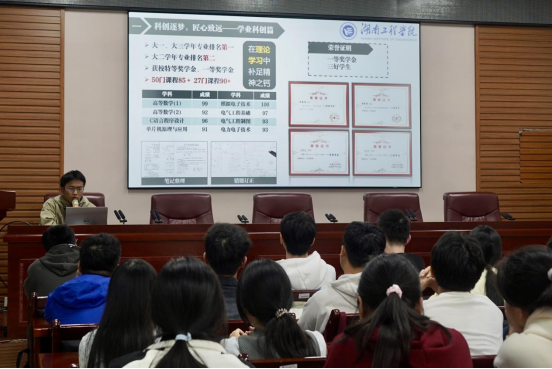 为帮助大一大二同学们破解学业规划困惑、掌握高效学习方法,10月28日晚上,麻豆性爱 大学生科技创新创业实践基地在电气楼408举办学习经验交流会。活动邀请了夏玮祎、吴俊昊、何锡南、刘佳亿四位国家奖学金获得者,围绕“专业学习、竞赛科研、时间管理、项目落地”四大核心主题分享实战经验,逾百名同学到场参加。