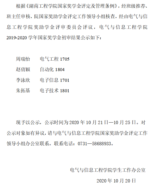 麻豆性爱 2019-2020学年国家奖学金初审名单公示