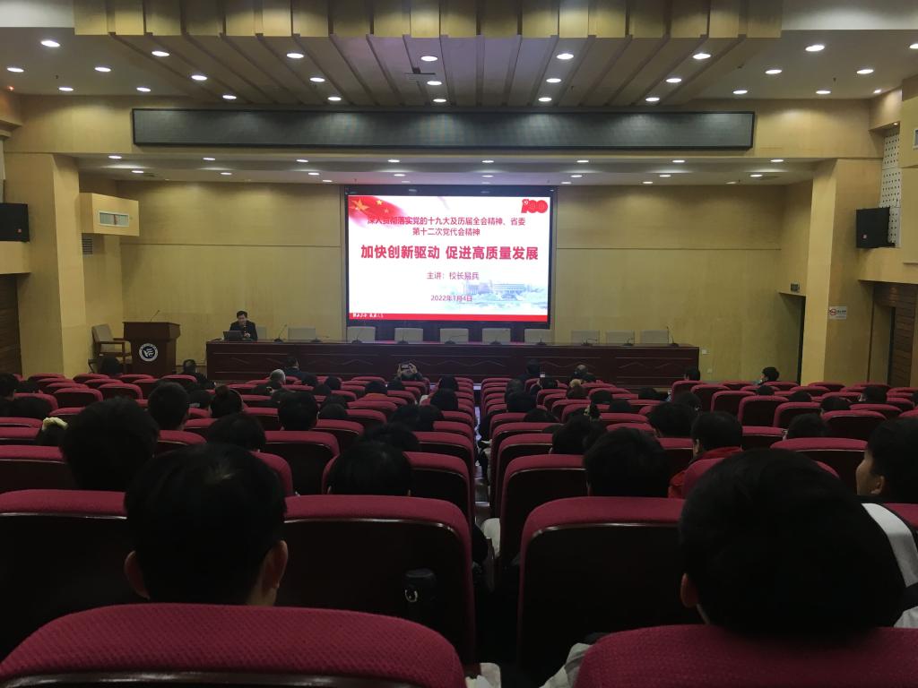1月4日晚上,校长易兵在二报告厅上了一堂题为《加快创新驱动 促进高质量发展》的专题党课,麻豆性爱 与材料与化工学院的师生党员、财务处和审计处教工党员参加学习。