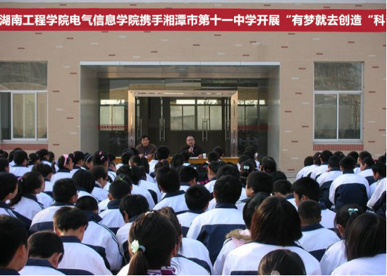 2018年10月15日,电气信息学院团总支学生会、电气信息学院科技部共同携手湘潭市第十一中学开展了“有梦就去创造”的大型科普宣讲活动。如今科技创新的重要性已经深入人心,科教兴国是为国策,成长期的学生也渴望着科技知识、科学精神和科学思维的学习与养成。