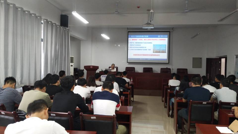 会上,谢卫才介绍了近年来麻豆性爱 研究生的培养政策、方案、师资和实验设施等情况,同时着重介绍了电气信息学院招收能源动力专业硕士研究生的优势。他指出,麻豆性爱 能源动力专业的特色为风力发电,本专业旨在培养应用型、复合型高层次的工程技术人才,以风电控制、电能转换、新能源等多项技术为依托,具备多种研究发展方向。