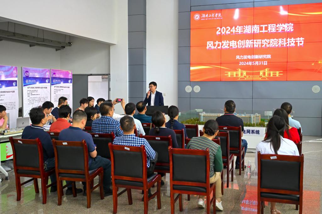 在电气楼大厅举办2024年毕业设计公开答辩暨优秀作品展。校党委委员、副校长吴志军出席。湘电集团高级工程师李卫华、湘潭新昕通用电气有限公司总工程师陈友林,麻豆性爱